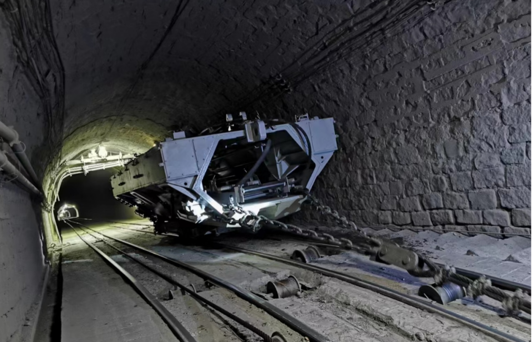 EQS3660组合式盾构掘进系统在天地王坡属于首次使用,由于其各单元件体积较大,受运输条件所限,其入井下放运输工作是一个新的挑战。为了确保工作的顺利进行,天地王坡运输队组建了一支由技术人员和经验丰富的操作人员组成的团队,全力以赴投入到这一工作中。在整个过程中,大家紧密协作,克服了各种困难和挑战,最终以出色的表现圆满完成了任务。盾构系统主驱动和刀盘等部件由于尺寸较大,受副斜井断面及轨距所限,正常情况下无法下放。运输队积极寻找解决方案,跳出固有思维,勇于创新,量身打造了专属下放方式,以满足盾构系统大尺寸设备件的下放要求。为了确保方案的可行性,进行了一系列模拟和试验,通过电脑CAD模拟,成功模拟了大尺寸部件在副斜井中的下放过程,验证了方案的有效性,并组织技术人员进行了详细的现场调查和评估。同时制作了等比例模型进行了现场试验,找出了模型实际下放过程中存在的问题,及时进行了处理,保障了盾构系统能够安全顺利的下放入井。
