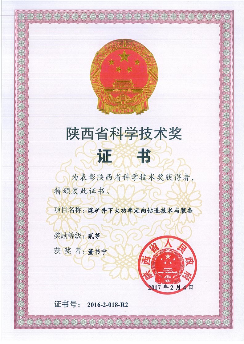 19.2016年陕西省科学技术二等奖--煤矿井下大功率定向钻进技术与装备,排名第2;