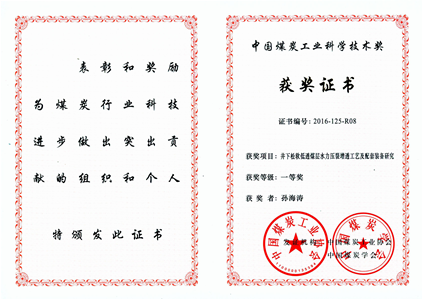 (2)中国职业安全健康协会科学一等奖:单一开采煤层条件下采动区瓦斯地面井抽采成套技术