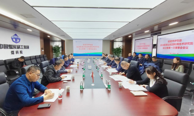 11月11日,哈密市伊吾县富油煤清洁高效利用技术研究院第一次理事会会议在煤科院召开。伊吾县政府常务副县长张克文、副县长高健、伊吾县工信局党组书记吴东云、新疆大学省部共建实验室主任贾殿赠、新疆宣东能源有限公司总工陈步宁、广汇能源股份有限公司总经理闫军、伊吾疆纳新材料有限公司董事长张教、宣东研究院副院长周玉生等参加会议。煤科院党委书记、董事长李振涛,党委委员、副总经理尚庆雨出席会议。